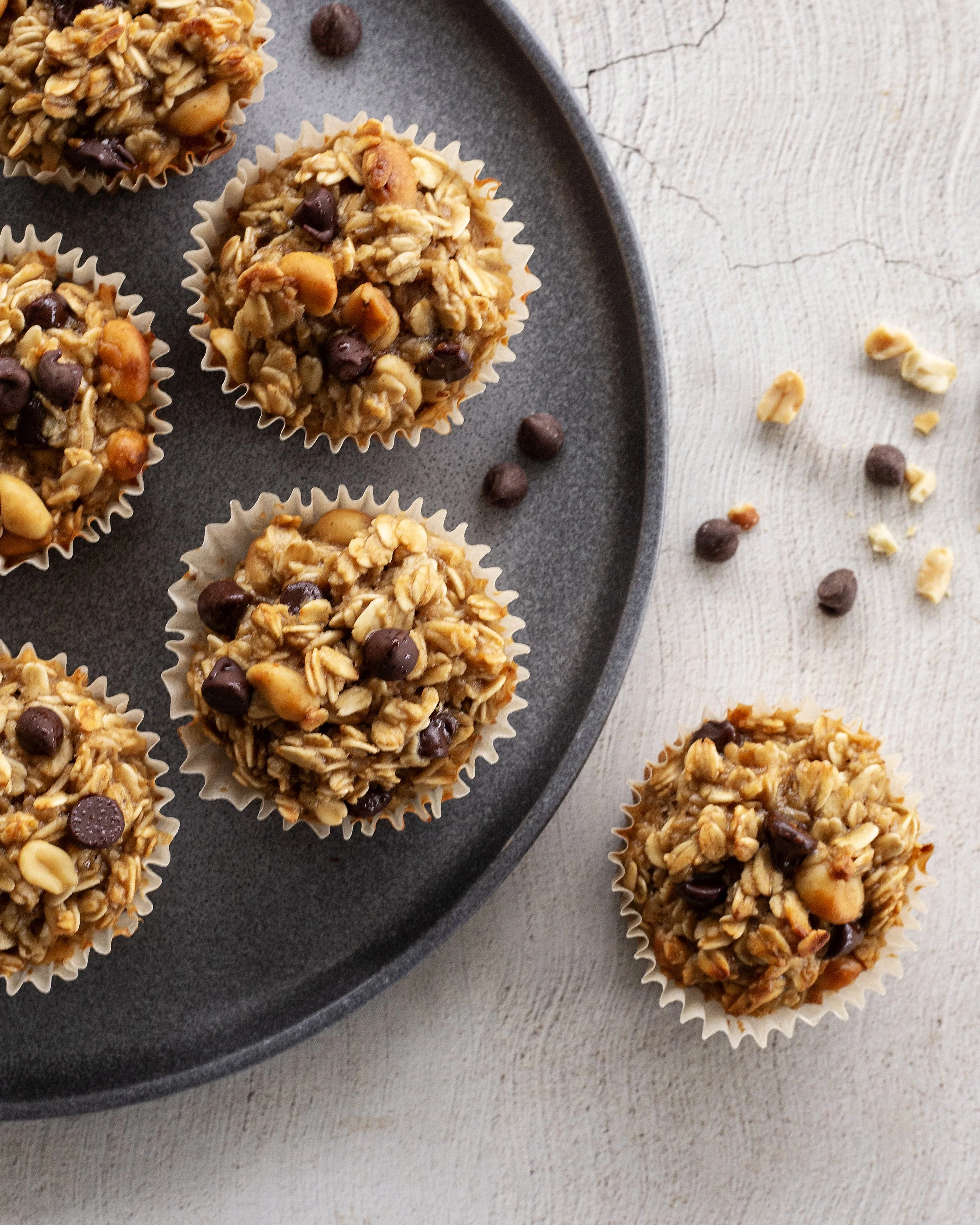 If you’re a fan of peanut butter chocolate, this is your muffin / baked oat version that’s portable and can function as part of breakfast, lunch, midnight snack, or on-to-go fuel!
